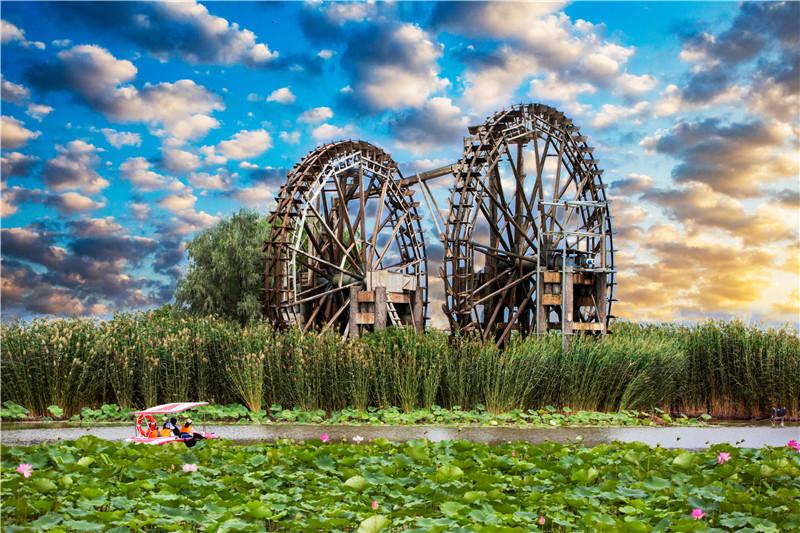 銀川市濕地(包含河流水域)面積531平方公里(80萬畝),占市域土地總面積7.65%,人均濕地面236平方米,是全國的6倍,市區(qū)濕地率達到10.65%,濕地保護率達到78.5%,2018年被評為我國首批“國際濕地城市”。鳴翠湖位于興慶區(qū)掌政鎮(zhèn),總規(guī)劃面積8840畝,是歷史上銀川“七十二連湖”重要組成部分,是中國西部地區(qū)和黃河流域首家國家濕地公園、“國內(nèi)首個立體生態(tài)荒漠化濕地成功修復力作”、國家水利風景區(qū)、國家4A級旅游景區(qū),享有“中國最美濕地公園”“中國生態(tài)保護最佳濕地”等美譽。銀青公路穿湖而過,將其分為南北兩湖,其中:南湖為濕地生態(tài)保護核心區(qū)占地3845畝,只進行濕地保護與恢復性建設;北湖占地4995畝,進行濕地景觀建設和濕地生態(tài)旅游項目的開發(fā)經(jīng)營。鳴翠湖湖泊面積占湖區(qū)面積的80%,景區(qū)生物多樣性富集,有維管植物109種、水生浮游植物69種、鳥類97種。湖光瀲滟、蘆葦蕩漾、楊柳依依、水車吱吱、魚翔淺底、百鳥鳴翠,遠望水鷺雙飛起,近看風荷一向翻;接天蓮葉無窮碧,映日荷花別樣紅,在我國西北干旱地區(qū)和黃河沖積平原區(qū)域具有典型性和代表性。