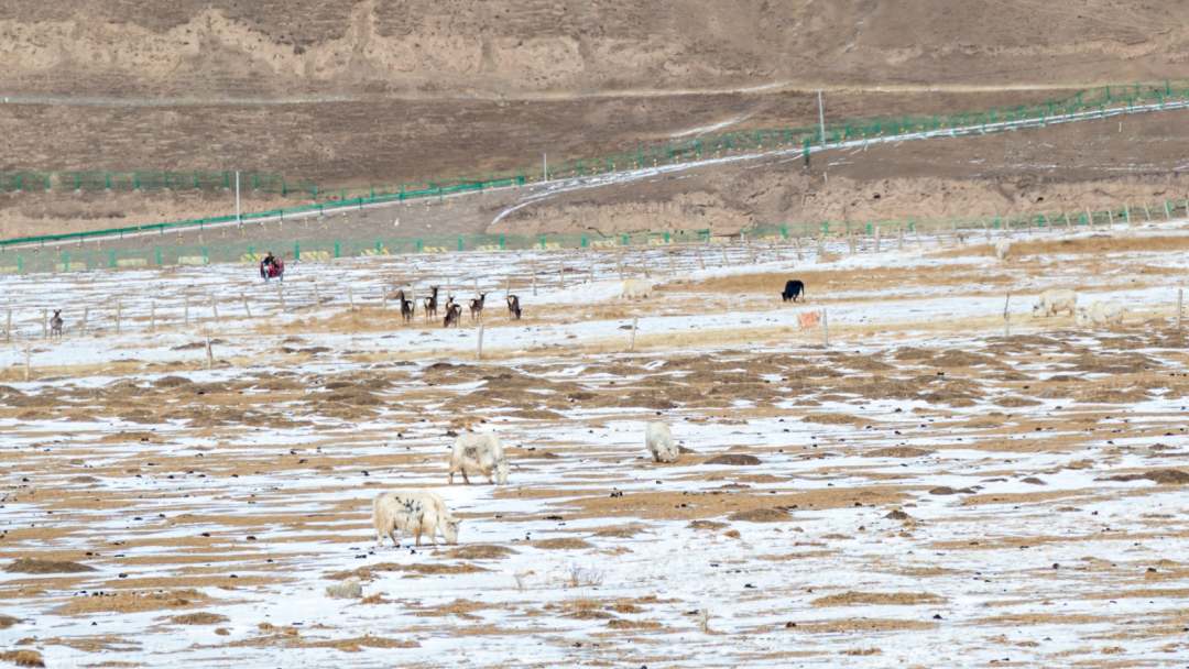 近日,在武威市天祝藏族自治縣抓喜秀龍草原上,野生的狍鹿和牧民家養(yǎng)的白牦牛同食牧草,構(gòu)成一幅和諧動人的自然圖景。張廷愛攝。