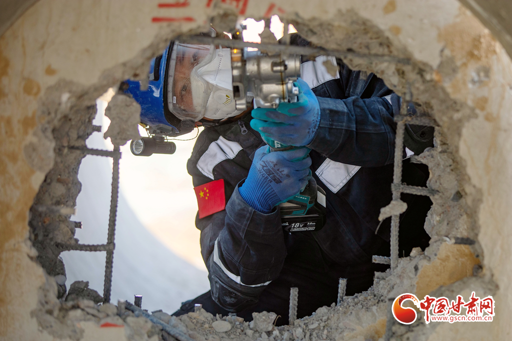 培訓(xùn)隊(duì)員正在開展狹小空間破拆訓(xùn)練