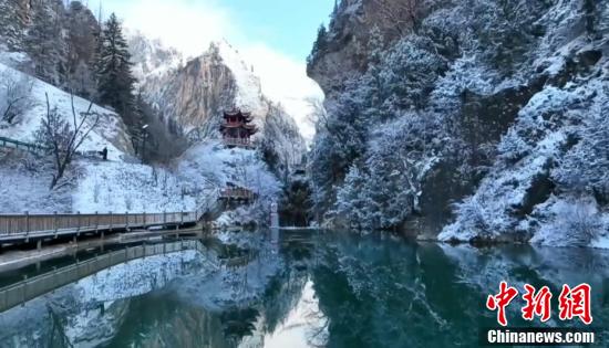 航拍甘南大峪溝雪景,銀裝素裹美如畫。