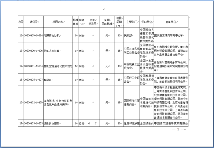國家標(biāo)準(zhǔn)化管理委員會(以下簡稱國家標(biāo)準(zhǔn)委)發(fā)布《關(guān)于下達(dá)適老化改造推薦性國家標(biāo)準(zhǔn)專項(xiàng)計(jì)劃及相關(guān)標(biāo)準(zhǔn)外文版計(jì)劃的通知》(以下簡稱《通知》)。《通知》稱,為實(shí)施積極應(yīng)對人口老齡化國家戰(zhàn)略,對照全國政協(xié)關(guān)于加快推進(jìn)社會適老化改造的民主監(jiān)督事項(xiàng),經(jīng)研究,國家標(biāo)準(zhǔn)化管理委員會決定下達(dá)適老化改造推薦性國家標(biāo)準(zhǔn)專項(xiàng)計(jì)劃及相關(guān)標(biāo)準(zhǔn)外文版計(jì)劃(附后)。本批適老化改造領(lǐng)域推薦性國家標(biāo)準(zhǔn)專項(xiàng)計(jì)劃共計(jì)39項(xiàng),其中制定35項(xiàng)、修訂4項(xiàng)。