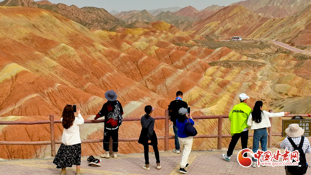 5月1日,甘肅張掖七彩丹霞旅游景區(qū)內(nèi)游人如織,來(lái)自全國(guó)各地的18000多名游客慕名前來(lái),欣賞獨(dú)特的丹霞地貌,領(lǐng)略大自然雄奇壯觀的景色。