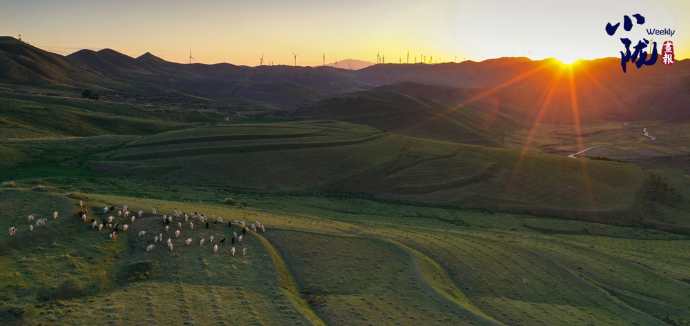 極目遠望,隨著山坡緩緩蔓延開來的草原,被溫柔的落日余暉浸染,變得美不勝收,盡收眼底。