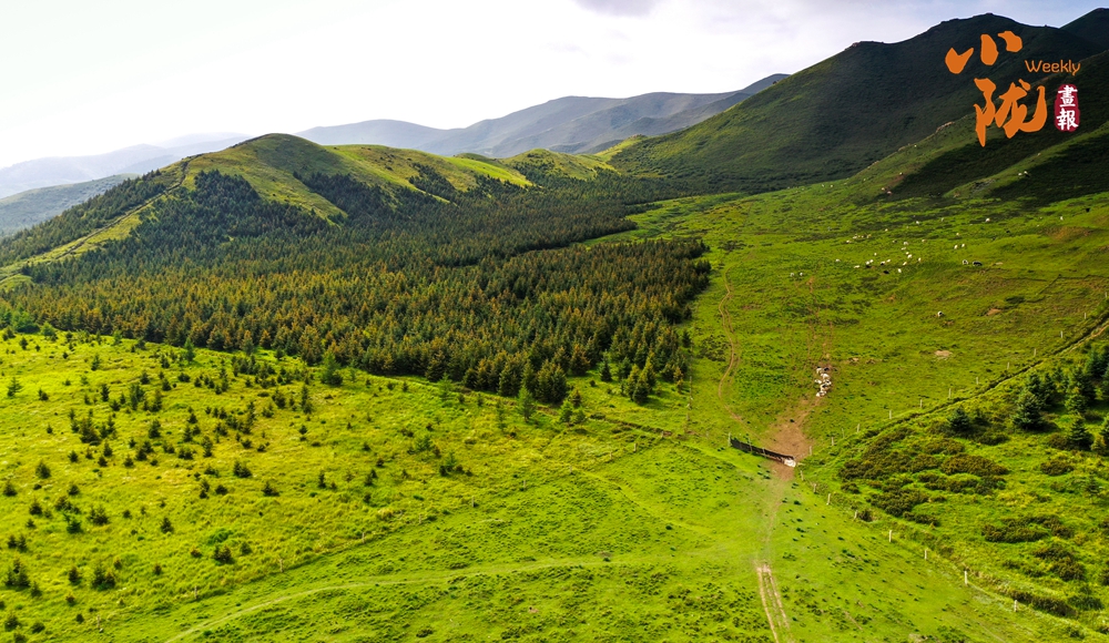 草原在山脈起伏中展開,南來北往的游客踏草慢行,感受獨特的草原夏日風情。