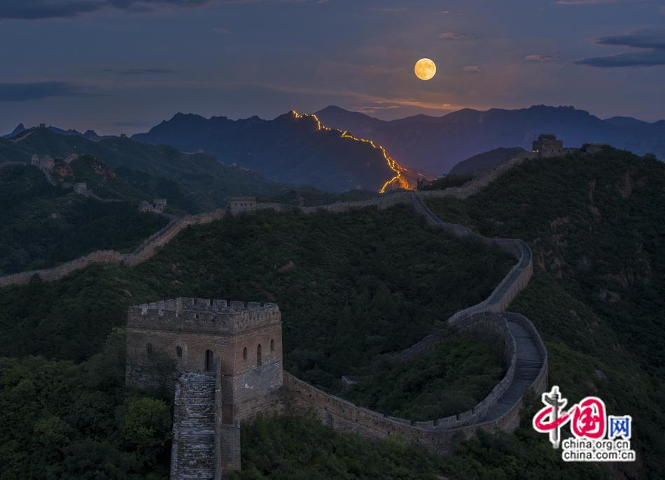 【點(diǎn)睛】8月30日晚,今年最大“超級(jí)月亮”現(xiàn)身金山嶺長(zhǎng)城夜空。夜色中,曾被央視評(píng)選為“中國(guó)最美賞月地”的金山嶺長(zhǎng)城顯得更加神秘、壯美巍峨。中秋國(guó)慶小長(zhǎng)假就要來(lái)了,長(zhǎng)城賞月別有韻味。
