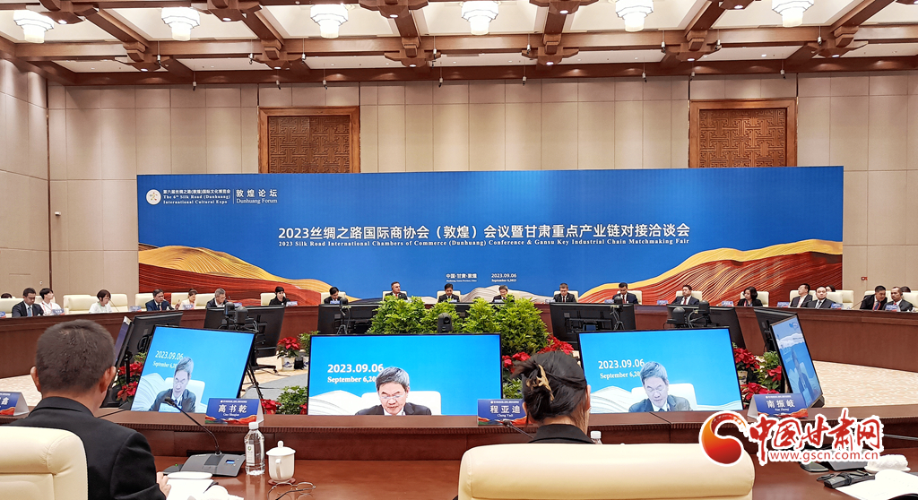 中國甘肅網(wǎng)9月6日訊(西北角·中國甘肅網(wǎng)記者 宋芳科 程健 程霜 李云樂)9月6日下午,第六屆絲綢之路(敦煌)國際文化博覽會系列活動2023絲綢之路國際商協(xié)會(敦煌)會議暨甘肅重點(diǎn)產(chǎn)業(yè)鏈對接洽談會在敦煌舉辦。