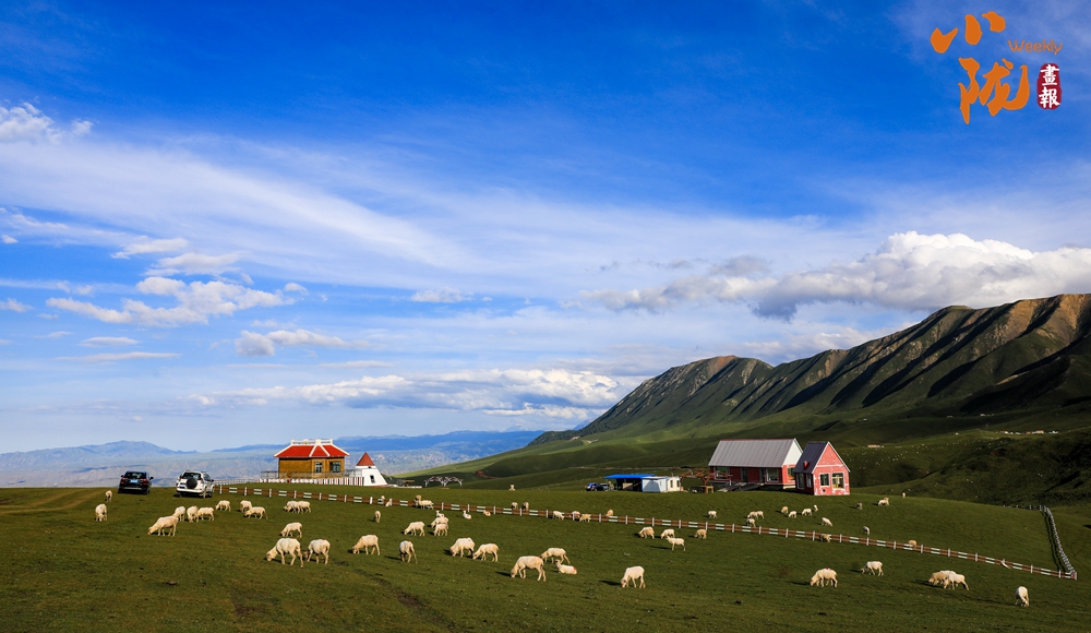 祁連山下綠草如茵,牛羊點(diǎn)綴其中,別具風(fēng)情。