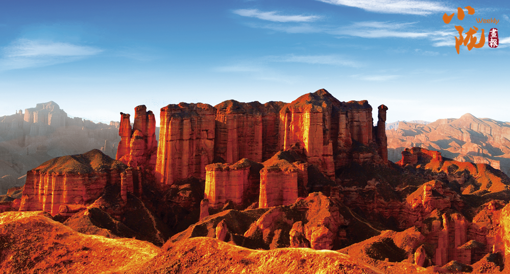 冰溝丹霞以砂巖地貌遺跡景觀為主體,是國內(nèi)窗欞狀宮殿發(fā)育最好、規(guī)模最大的地質(zhì)地貌遺跡,是“窗欞狀宮殿式丹霞”的命名地。