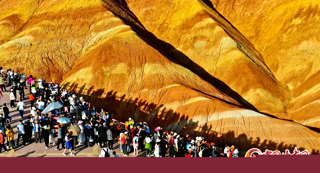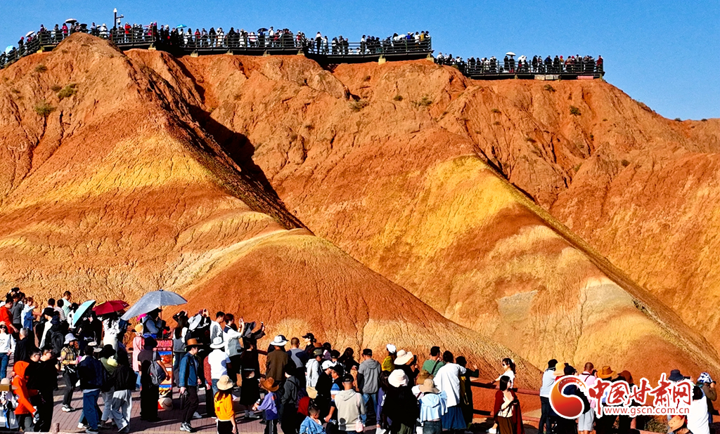 9月30日,甘肅張掖七彩丹霞景區(qū)內(nèi)人頭攢動(dòng),全國(guó)各地的游客紛至沓來,欣賞獨(dú)特的丹霞地貌,領(lǐng)略西北壯美景色。