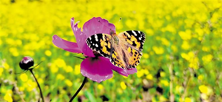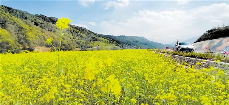 金秋時(shí)節(jié),沿太子山旅游風(fēng)情大通道臨夏縣段景色如詩如畫,油菜花、墻體彩繪與遠(yuǎn)山、藍(lán)天白云相映成輝,令人賞心悅目。