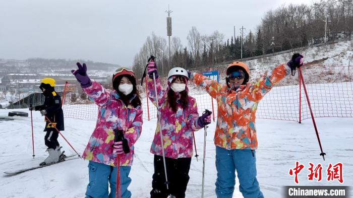 圖為臺(tái)胞青年在雪場(chǎng)拍照留念。王牧雨 攝