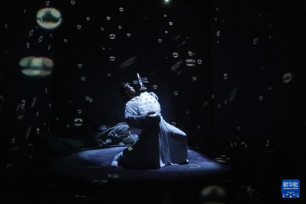 1月21日,在甘肅省敦煌市,演員在大型洞窟式沉浸體驗(yàn)劇《樂(lè)動(dòng)敦煌》中表演。新華社記者 馬希平 攝