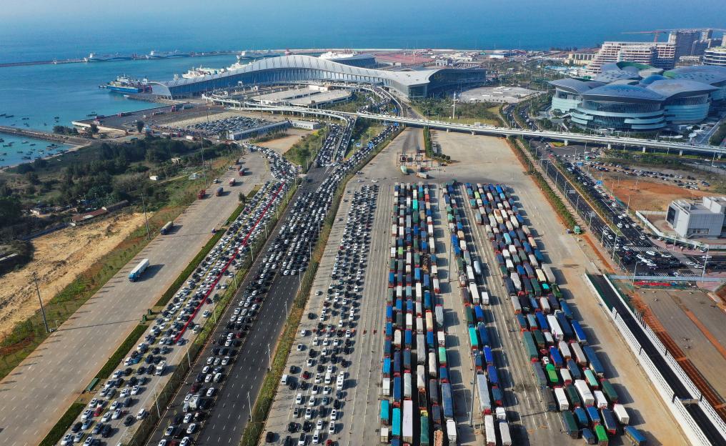 ??谑薪煌ㄟ\(yùn)輸和港航管理局發(fā)布的信息顯示,截至2月19日15時(shí),預(yù)約出島小車總數(shù)約2萬輛,已運(yùn)送出島約1萬輛,全天預(yù)約待出島約1萬輛。新海港港區(qū)和港外待渡車場呈現(xiàn)飽和狀態(tài),疏運(yùn)仍需較長時(shí)間。