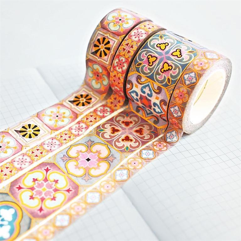 紋樣膠帶——在眾多文創(chuàng)產(chǎn)品中,膠帶的銷售或人氣排行榜靠前。紙膠帶雖是個小物件,但藝術(shù)化的紙膠帶卻能夠滿足多種需求,適應(yīng)多層次人群的需求。圖形多來自器物上的印刻、繪制圖案,或抽象或具體。這也就體現(xiàn)了兩種效果,一種是文藝范,另一種是趣味感,來自重構(gòu)傳統(tǒng)的高大上,消解歷史的審美觀。設(shè)計靈感來自中國傳統(tǒng)紋樣,融合敦煌元素,有層次的色彩斑斕,圖案以及細節(jié)都恰到好處。
