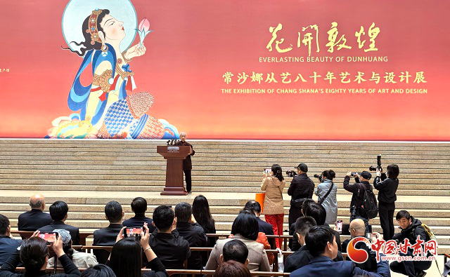 中國甘肅網(wǎng)4月30日訊(西北角·中國甘肅網(wǎng)記者 任磊)29日上午,“花開敦煌——常沙娜從藝八十年藝術(shù)與設(shè)計展”在中國工藝美術(shù)館盛大開幕。展覽匯聚了著名藝術(shù)教育家和藝術(shù)設(shè)計家常沙娜先生400余件代表性作品,既展現(xiàn)了她深厚的敦煌藝術(shù)傳統(tǒng)積淀,也彰顯了她為新中國藝術(shù)設(shè)計做出的杰出貢獻(xiàn)。