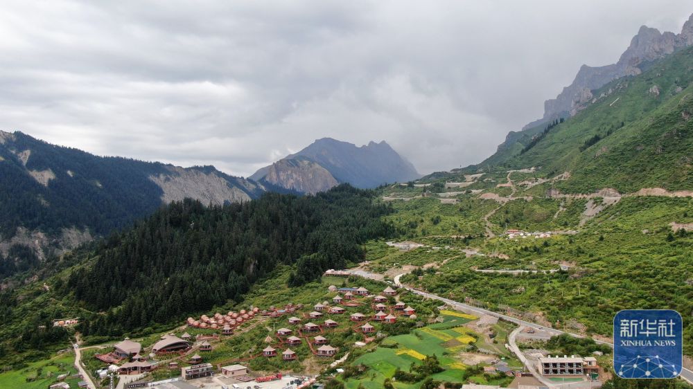 ↑ 這是6月27日拍攝的扎尕那一處帳篷營地民宿(無人機(jī)照片)。新華社記者 陳斌 攝