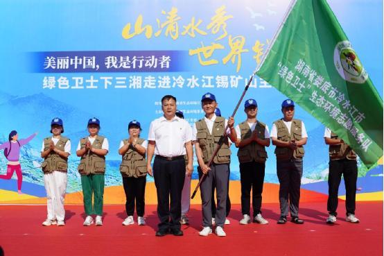 活動現場,與會領導還為冷水江綠色衛(wèi)士生態(tài)環(huán)境志愿服務隊進行了授旗。
