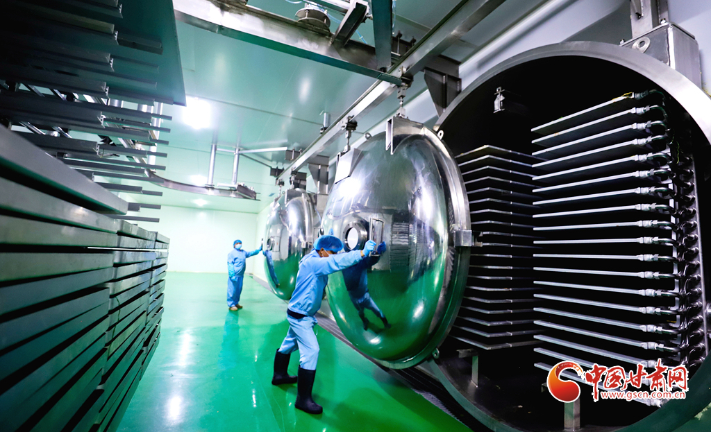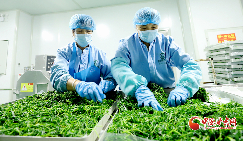 8月8日,臨澤縣沙河鎮(zhèn)一麥苗凍干粉生產(chǎn)線上,工作人員正在進行分揀、清洗、高溫漂燙、翻晾裝盤、凍干研磨等生產(chǎn)工序,完成廣東、福建、上海、浙江等地客商的訂單。