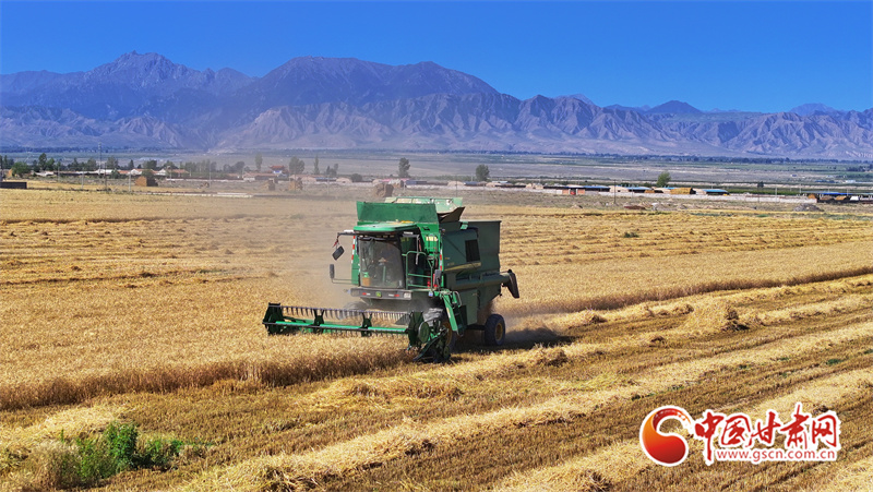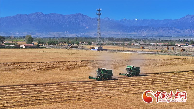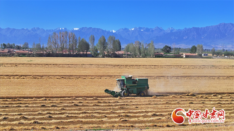 眼下,位于祁連山下的民樂縣南古鎮(zhèn)毛城村800畝連片小麥種植基地上,機(jī)聲隆隆,農(nóng)機(jī)手們駕駛收割機(jī)穿梭往返麥田之中搶收小麥,一派忙碌的豐收景象。近期,隨著民樂縣沿祁連山冷涼山區(qū)小麥迎來(lái)成熟季,民樂縣種植的26萬(wàn)畝小麥進(jìn)入了繁忙的收割期。