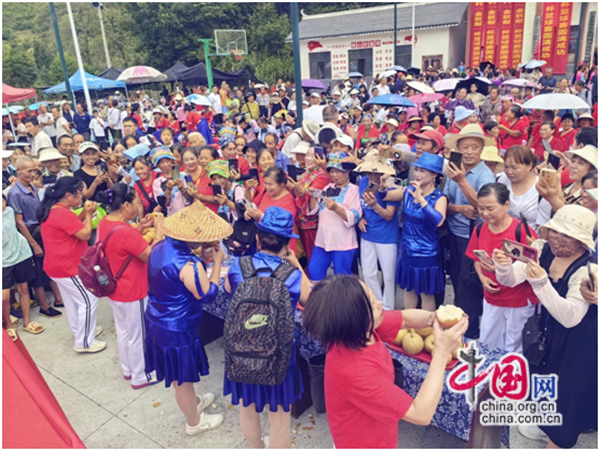 “今天的活動(dòng)非常熱鬧,我聽說補(bǔ)戈村的金秋梨好吃,所以今天特地來(lái)嘗一下,真的是又大又甜,我啃了幾大口了都還沒吃完……”坪場(chǎng)上,游客彭秀芳興奮地向周圍的人描述著補(bǔ)戈金秋梨的甜美。
