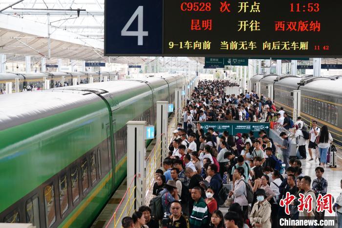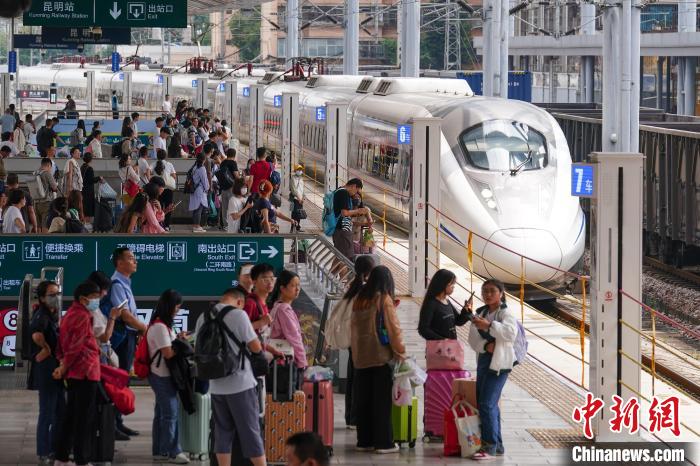8月31日,云南昆明,旅客在昆明站候車前往西雙版納方向。當日,為期62天的中國鐵路暑運結束。中新社記者 劉冉陽 攝