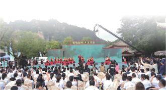 主詩會(huì)現(xiàn)場(chǎng),氣勢(shì)恢弘的武術(shù)表演,精彩絕倫的拿手絕技,美輪美奐的崆峒山景,蕩氣回腸的武林唱響,組成一幅幅震天動(dòng)地的美麗畫卷。伴著《少林,少林》《中國功夫》的歌聲,中岳武校功夫表演團(tuán)數(shù)套行云流水的少林武術(shù),豪氣干云、笑逸蒼茫,一招一式古風(fēng)流存,展現(xiàn)出少林武者英雄豪杰的氣魄與豪邁,演繹了少林武魂的禪武精神。這些平常只能在電影或電視中才可以看到的少林武功,而今就在眼前,觀眾們紛紛報(bào)以熱烈掌聲。武與舞的“對(duì)話”,武與舞的“相遇”詮釋鐵血丹心、俠骨柔情。由平?jīng)鰫郯鹏嵛璧概嘤?xùn)中心帶來舞蹈《王母夜宴》,通過王母夜宴的歡樂場(chǎng)景,將西王母和周穆王相愛的神話故事深情講說,情濃處,千回百轉(zhuǎn),柔腸百結(jié)。一曲《刀劍如夢(mèng)》穿越時(shí)空而來,歌手用獨(dú)特的嗓音,將這首歌演繹得淋漓盡致,將觀眾帶入了一個(gè)感性而深沉的氛圍,帶領(lǐng)我們回到了那個(gè)充滿江湖氣息的瑰麗世界。“滄海一聲笑,滔滔兩岸潮,浮沉隨浪只記今朝,蒼天笑,紛紛世上潮,誰負(fù)誰勝出天知曉滄海笑……”一曲《滄海一聲笑》,營造了一股濃濃的中國俠士逍遙風(fēng),旋律步步低落,先抑后揚(yáng),峰回路轉(zhuǎn),觀眾隨著音樂的意象一步步陷入蒼涼和寂寥中。隨著歌曲的高跌起伏,一個(gè)個(gè)精彩的片段定格為現(xiàn)場(chǎng)觀眾一張張手機(jī)影像。