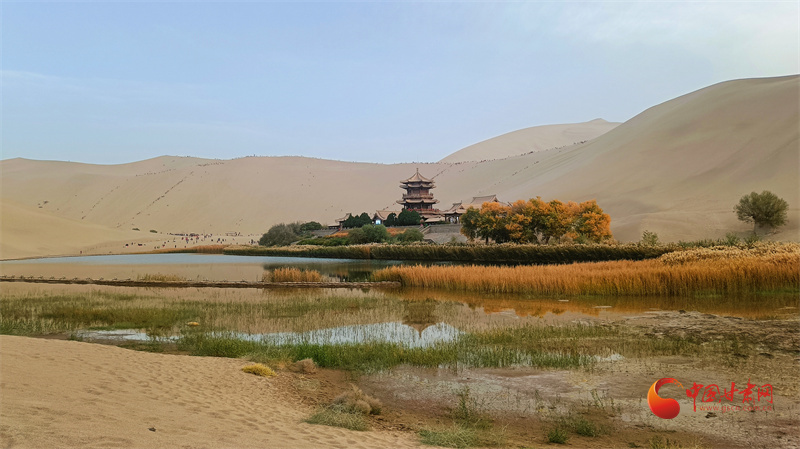 深秋的月牙泉,蘆葦搖曳,秋水伊人。鳴沙山月牙泉又進(jìn)入到秋水共長天一色的模式,以寧靜、優(yōu)雅迎接著來自全國各地的游客。
