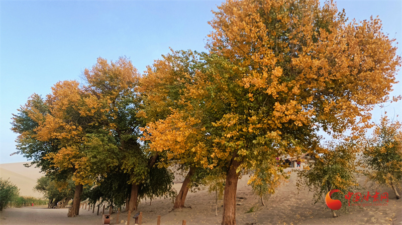 時(shí)下,鳴沙山月牙泉景區(qū)換上了斑斕的秋裝,如同調(diào)色盤上的色彩隨意揮灑,繪就了一幅幅令人心曠神怡的秋日畫卷。