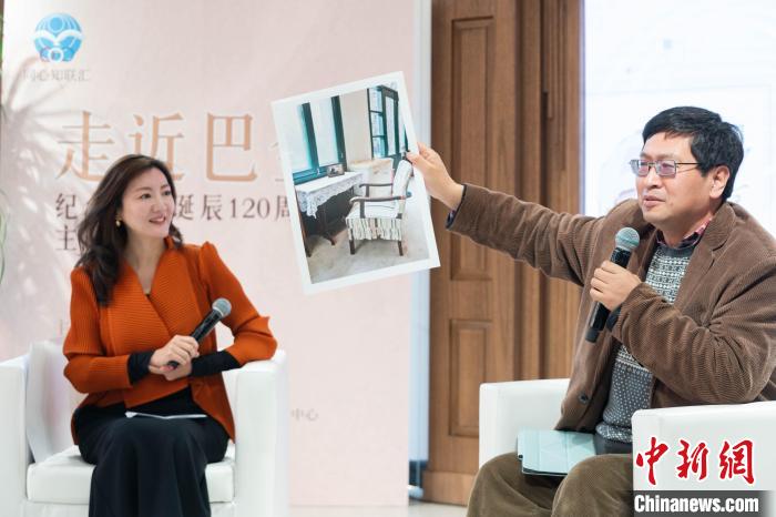 巴金故居常務副館長周立民向觀眾分享巴金故居內(nèi)的陳設細節(jié)與相關(guān)故事。上海市委統(tǒng)戰(zhàn)部供圖