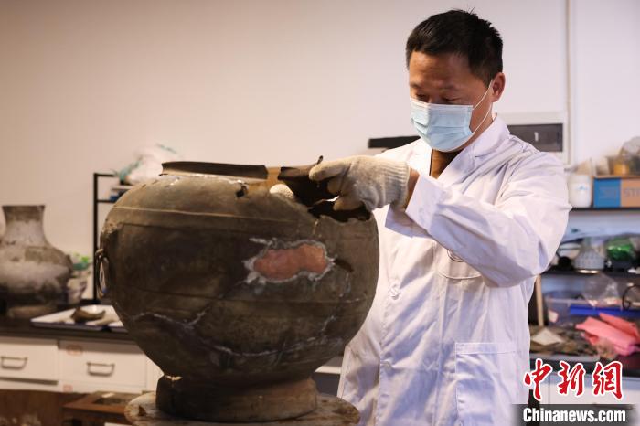 “青銅器和簡牘不一樣,它需要相對干燥的環(huán)境來保存,由于墓室坍塌,很多出土的青銅器因受擠壓破碎、變形,還有很多銹跡和污物已經(jīng)掩蓋了該件器物的原本樣貌。”趙明輝表示,修補(bǔ)青銅器需要將一塊塊碎片進(jìn)行分類、比對、拼接等,如有變形還需先整形,隨后將其焊接,是一件不折不扣的“精細(xì)活”。