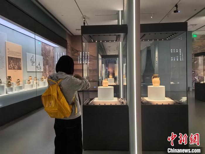 參觀者欣賞展品?!堁┯?nbsp;攝