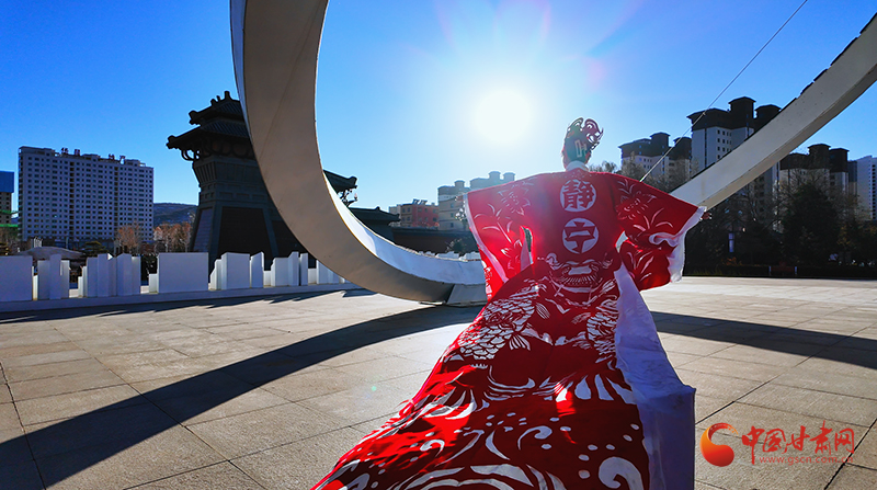 在靜寧縣成紀文化城里,兩名模特身著“盛裝”翩翩起舞,盡情展示自信與優(yōu)雅,緩緩走動間,靜寧蘋果、靜寧果農等元素裝飾的紅色剪紙服飾隨風搖曳,讓國家級“非遺”——中國剪紙也流動了起來。這精彩的作品展示,來自仇跟銀的妙手。