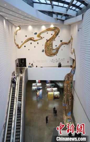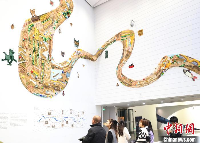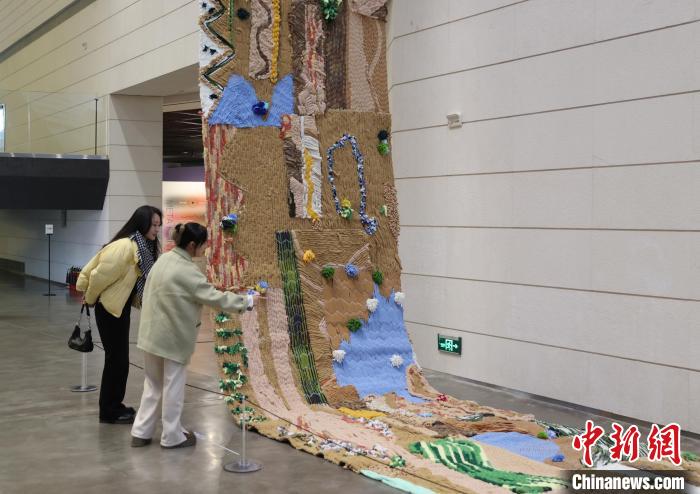 12月8日,市民在寧夏銀川當代美術館欣賞“奔流的舞姿:藝起織造母親河”藝術展。當日,“奔流的舞姿:藝起織造母親河”公益項目藝術展在銀川當代美術館正式對公眾開放。該項目匯聚了黃河兩岸200余位織手的巧作,按照黃河特點和視覺審美拼接和織造,織造出一個極具視覺效果的“大河”,通過藝術的橋梁,展示奔涌黃河的優(yōu)美舞姿和不息精神,同時激發(fā)社會各界對黃河生態(tài)保護的共識與行動。中新社記者 于晶 攝