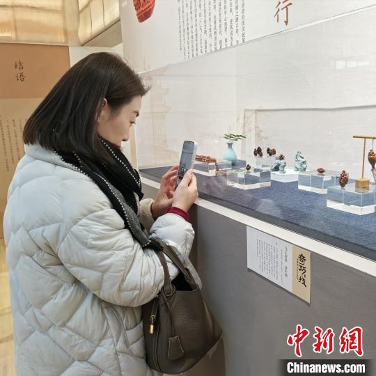民眾參觀展出的核雕?!≈行戮W(wǎng)記者 鐘升 攝