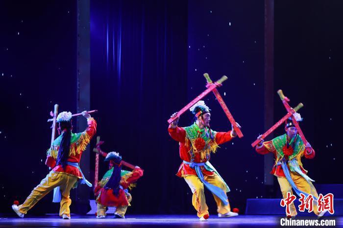 12月9日,甘肅蘭州,來(lái)自甘肅定西市隴西縣的云陽(yáng)板舞表演者,演繹古老文化。田鵬鶴 攝