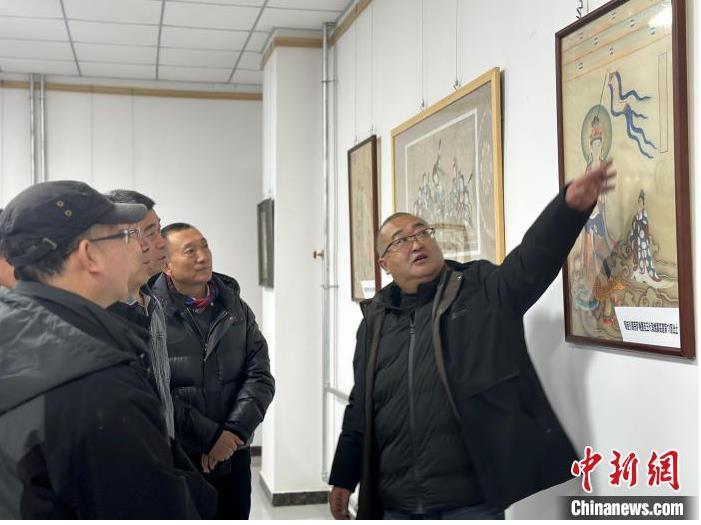 12月17日,由蘭州市七里河區(qū)委宣傳部、七里河區(qū)文體旅局聯(lián)合舉辦的“大漠孤陽(yáng)映彩霞 敦煌神韻美如畫”新時(shí)代文明實(shí)踐主題活動(dòng)暨敦煌巖彩畫書畫藝術(shù)展拉開帷幕。此次參與展覽的敦煌巖彩畫,集中展現(xiàn)了敦煌文化的獨(dú)特魅力。畫師衣世民稱巖彩畫展示的是“移動(dòng)的敦煌”。圖為展出的巖彩畫。楊娜 攝