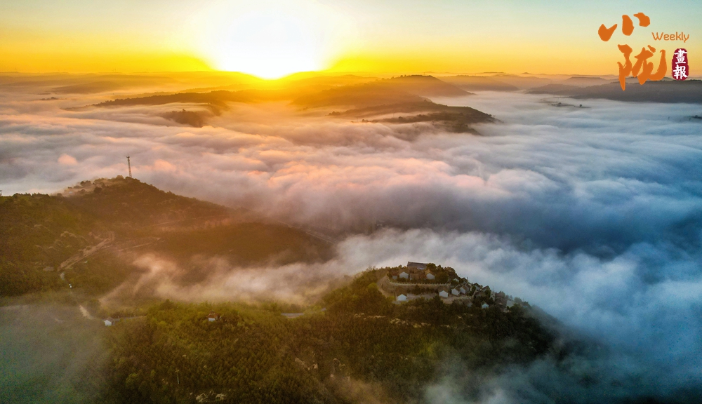 清晨陽(yáng)光露臉,涌動(dòng)的云海、青翠的山嶺、靜謐的村莊,把整個(gè)山頂裝扮得似“仙境”一般。