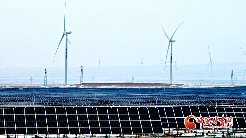 12月18日, 一場(chǎng)大雪過后,大漠深處的張掖市臨澤縣北部灘新能源產(chǎn)業(yè)園內(nèi),81.1萬(wàn)千瓦光伏治沙光伏集陣和85萬(wàn)千瓦風(fēng)力發(fā)電機(jī)組群,在防沙治沙的同時(shí)將光熱和風(fēng)力轉(zhuǎn)換為電能輸入國(guó)家電網(wǎng),推進(jìn)了“西電東送”輸電工程建設(shè)。