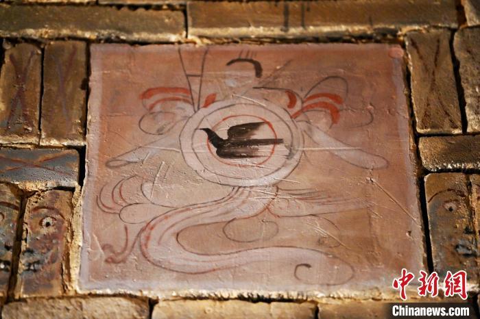 1月10日,在甘肅省敦煌市敦煌博物館展陳的《伏羲畫像磚》。該畫像磚在1991年12月出土于佛爺廟墓群,畫像里的伏羲呈現(xiàn)人首蛇身狀。中新社記者 李亞龍 攝