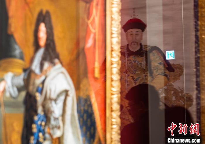 2月19日,正在香港故宮文化博物館持續(xù)展出的“當(dāng)紫禁城遇上凡爾賽宮——十七、十八世紀(jì)中法文化交流”展部分珍品煥新亮相,《康熙帝戎裝像》《龐巴杜夫人像》等約20件故宮博物院、法國(guó)凡爾賽宮的珍貴展品與公眾見面,繼續(xù)“講述”中法文化之交。圖為展廳玻璃映襯的故宮博物院藏《雍正帝朝服像》(右)和法國(guó)《路易十四肖像》。中新網(wǎng)記者 侯宇 攝