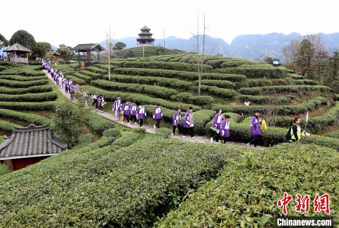 3月15日至16日,廣西柳州市一所中學組織千人研學團到三江侗族自治縣八江鎮(zhèn)布央村仙人山景區(qū)開展茶文化研學活動,沉浸式采春茶、炒春茶、品春茶,深入了解茶種植、茶制作、茶文化、茶品鑒等知識,進一步培養(yǎng)實踐能力、提高勞動素養(yǎng)。圖為研學活動現(xiàn)場。龔普康 攝