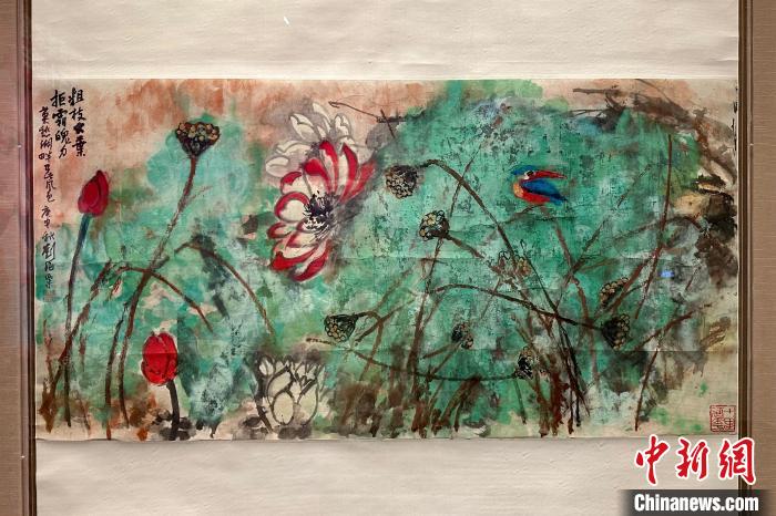 劉海粟《粗枝大葉荷花》?!≈行戮W記者 王笈 攝