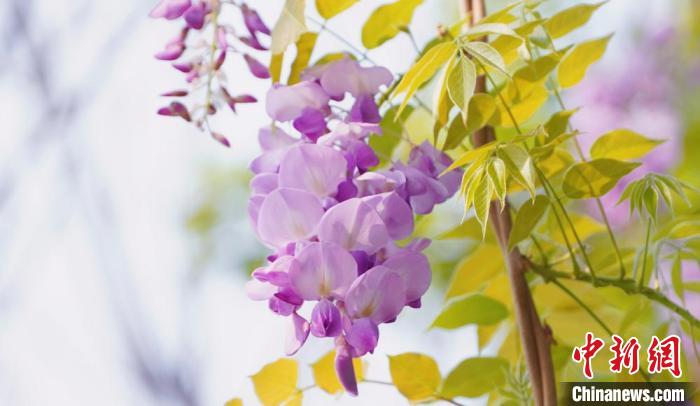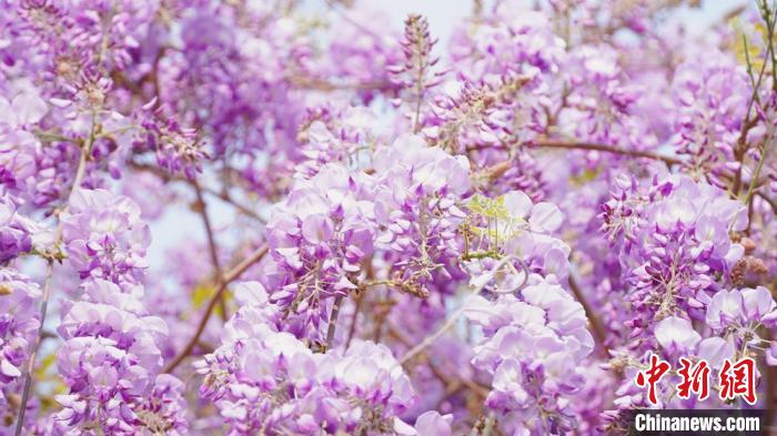 近日,廣西賀州市北堤公園的紫藤花迎春盛放,一串串紫藤花垂掛枝頭,花朵飽滿可愛,在綠色枝葉的掩映下,呈現(xiàn)出一派朝氣蓬勃的景象。圖為北堤公園的紫藤花。覃麗華  攝
