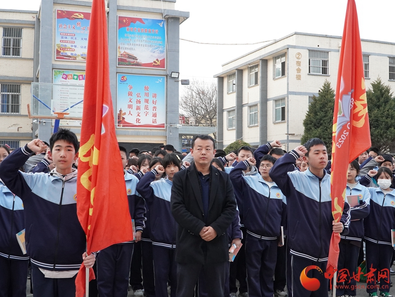 上午8時(shí)30分,華池縣列寧學(xué)校內(nèi)莊嚴(yán)肅穆,華池縣柔遠(yuǎn)初中、華池二中、城壕初中、山莊初中、列寧學(xué)校師生及各界代表懷著崇敬的心情列隊(duì)集合,舉行出征儀式。5所學(xué)校16支先鋒隊(duì)被授予“紅色傳承先鋒隊(duì)”旗幟,隨后師生代表吹響沖鋒號(hào)揮旗出發(fā),開(kāi)啟這場(chǎng)特別的旅程。