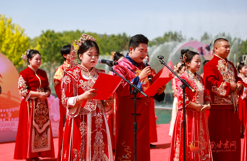 5月20日,酒泉市金塔縣“踐行新風(fēng) 青年先行”集體婚禮在文化廣場(chǎng)舉辦,來自全縣各行各業(yè)的20對(duì)新時(shí)代青年代表參加,在親朋好友和現(xiàn)場(chǎng)觀眾的見證下喜結(jié)良緣,共同開啟幸福人生新旅程。