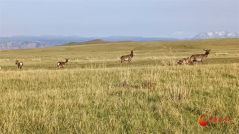 初夏的肅南大河草原牧草逐漸返青,一群群馬鹿在草原上悠閑覓食,游客到來并沒有打擾它們的正常活動(dòng)。