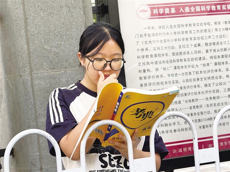 除了親人送考之外,老師們也來助陣了。在蘭州一中校門口,蘭州志成中學的老師們還在不斷叮囑考生們要細致,也預祝他們考出好成績。