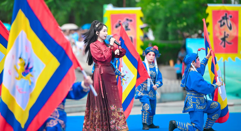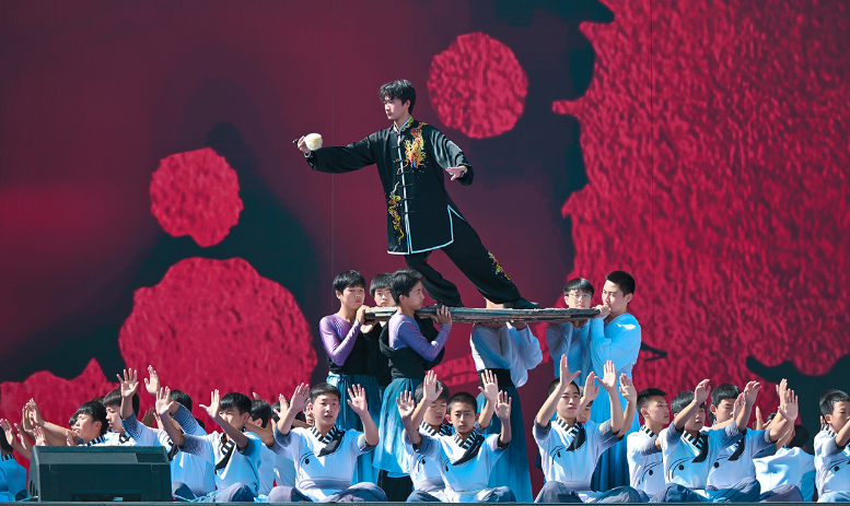 活動(dòng)伊始,開場(chǎng)片《歡迎乘坐崆峒號(hào)》以“環(huán)西部火車游·崆峒號(hào)”平?jīng)雎糜螌A袨殪`感,通過跨時(shí)空對(duì)話串聯(lián)崆峒山古今脈絡(luò),拉開活動(dòng)序幕?,F(xiàn)場(chǎng),街舞與崆峒武術(shù)團(tuán)體合作的《武韻崆峒》展現(xiàn)武術(shù)與現(xiàn)代肢體藝術(shù)新生機(jī);笛子演奏與武術(shù)冠軍聯(lián)袂呈現(xiàn)的《崆音劍影》打造“可聽的武術(shù)”沉浸式體驗(yàn);30人陣容的江蘇武協(xié)女子太極拳團(tuán)體演繹《鶴起崆峒》,詮釋武術(shù)新功用;國(guó)風(fēng)歌手與秦腔表演藝術(shù)家合作的《秦韻長(zhǎng)歌》,展現(xiàn)“武戲同源”的多元魅力。
