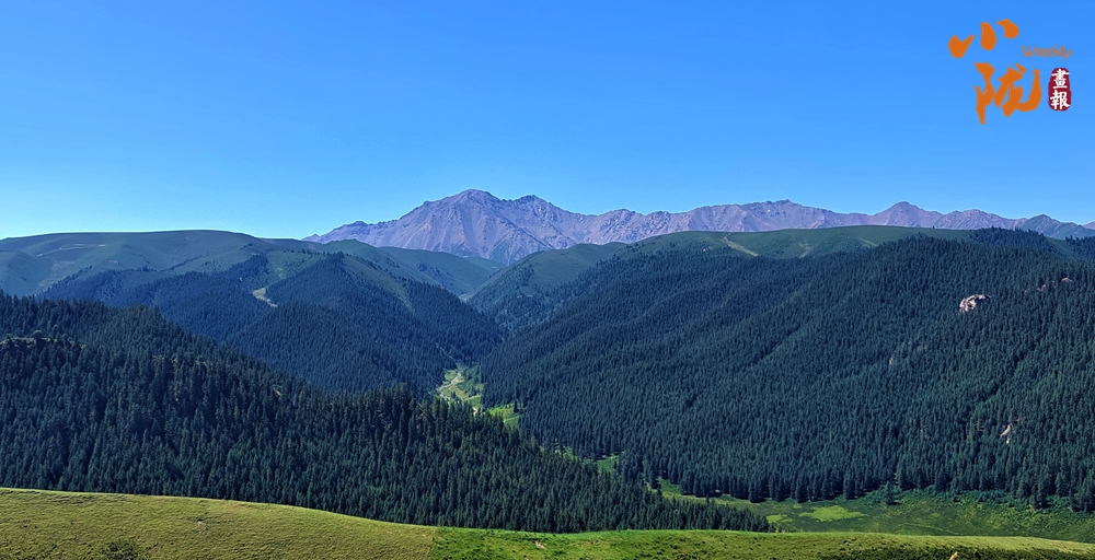 天空湛藍如洗,蒼莽翠綠的原始森林和高聳挺拔的祁連山脈相互輝映,構成一幅和諧壯麗的生態(tài)畫卷。祁連山是一座對河西走廊舉足輕重的山,從祁連山發(fā)源的河流滋養(yǎng)著河西走廊的綠洲。
