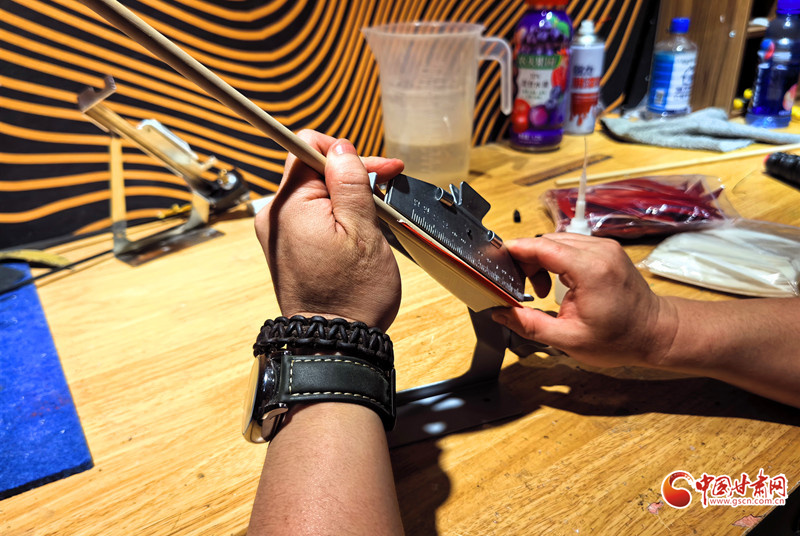 2011年,還是大學(xué)生的謝建戈在百度貼吧結(jié)識(shí)了山東臨沂“高氏傳統(tǒng)弓箭”非遺傳承人高超。囊中羞澀的他提出“先貨后款”,高超被這份赤誠(chéng)打動(dòng),寄來(lái)第一套玻片弓料。一個(gè)月后,生活費(fèi)一到賬,他第一時(shí)間把錢打了過(guò)去——網(wǎng)絡(luò)那端的高超從此記住了這個(gè)甘肅小伙。2012年,他做出人生第一把玻片弓。